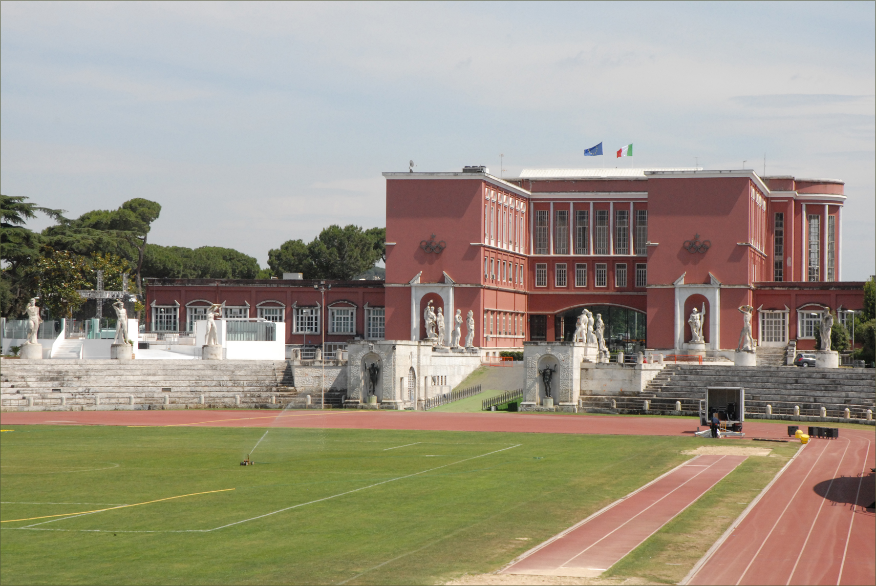 Po Berlinie miała nadejść kolej faszystowskich Włoch. Mussolini już od kilku lat przygotowywał stolicę swojego państwa na przyjęcie wielkich imprez międzynarodowych – Igrzysk Olimpijskich w 1940 i Wystawy światowej w 1942 roku. Żadne z wydarzeń nie doszło do skutku, ale ich architektoniczna spuścizna wciąż stanowi istotny element zrozumienia ideologicznej charakterystyki włoskiego faszyzmu. Foro Italico to centrum sportowe na północ od Watykanu, które było częścią nowego, kompleksowego planu Rzymu. Za konspektami i pojedynczymi realizacjami stali architekci związani z władzą, o dziwo posługujący się szerokim wachlarzem stylów – od klasycyzmu po modernizm. Forum swoją aranżacją przestrzenną nawiązuje do idei centralnego placu wzorowanego na antycznym odpowiedniku, jednak warstwa użytkowa to hołd dla kultury fizycznej. Klasycystyczne rzeźby i karraryjskie marmury, a także paradoksalna kameralność stadionów i kortów płasko ułożonych wśród drzew rzeczywiście przywodzą na myśl antyczny ideał świątyni sportu. Współcześnie do założenia dodano stadion jednej z lokalnych drużyn futbolowych przy zachowaniu wszystkich elementów z 1940 roku. Szczególną uwagę zwraca Stadio dei Marmi otoczony pięćdziesięcioma dziewięcioma figurami reprezentującymi wszystkie regiony Italii. Obiekt wybudowany za czasów Duce doczekał się Olimpijczyków dopiero dwie dekady później, goszcząc siedemnaste Igrzyska Olimpijskie w 1960 roku.