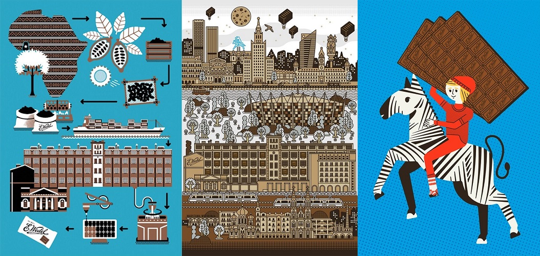 E.Wedel wie jednak, że sztuka może nie tylko cieszyć oko, ale i pomagać. Właśnie z takiego przekonania narodziła się zeszłoroczna współpraca marki z fundacją Omeny Mensach, marką Empik oraz – co najważniejsze – znanym grafikiem Janem Kallwejtem. O co chodziło? Kallwejt w swoim charakterystycznym stylu zaprojektował dla marki E.Wedel całą serię plakatów z czekoladowymi motywami (pojawił się także chłopiec na zebrze!), które można było kupić i z których dochód został przeznaczony na zakup komputerów dla polskich domów dziecka. Dlaczego akurat na to? Sprzęt komputerowy był – i wciąż jest – potrzebny wychowankom tych placówek do uczestniczenia w lekcjach prowadzonych online. Świetny pomysł!
