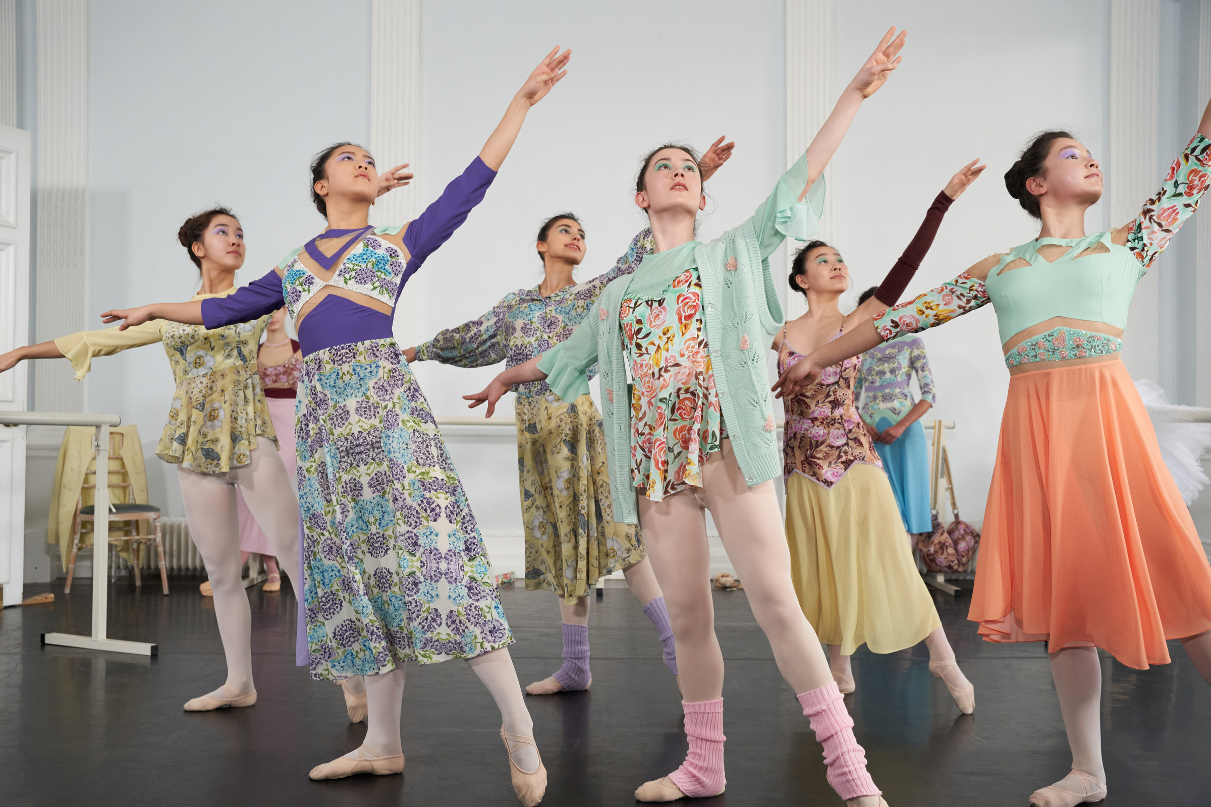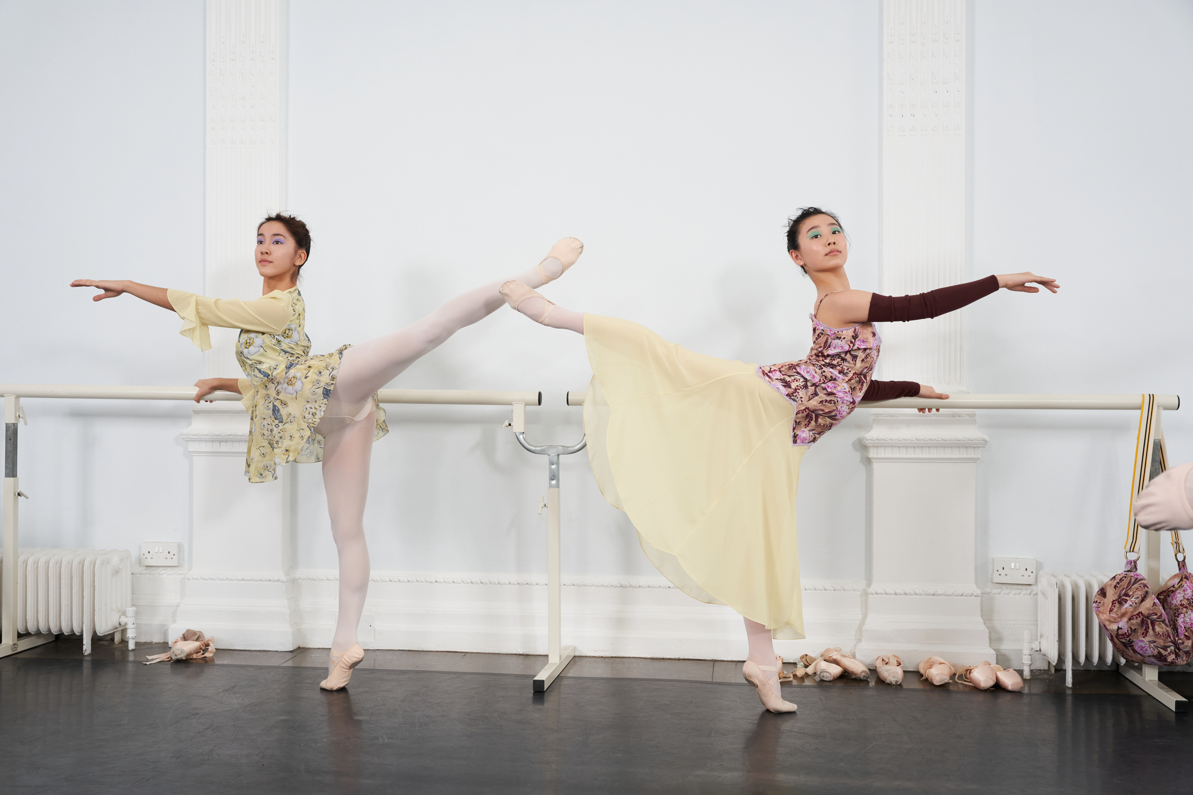 Marka Tata Naka zdecydowała się zajrzeć za zasłonę prób baletowych, a zamiast tiulu i tutus zaprezentowali obcisłe, kolorowe stroje, które samymi wzorami obiecują płynne ruchy i kocią grację. Prezentacja nie opierała się jednak na uprzednio przygotowanej choreografii, a na możliwości obserwacji przygotowań, podczas których tancerki ćwiczyły przy barre czy rozciągały się. Niech taneczne konotacje was nie zmylą – harmonijnemu wydarzeniu, które miało miejsce wśród eleganckich zabudowań obok St. James’s Park, daleko było od nerwowej atmosfery „Czarnego łabędzia”.