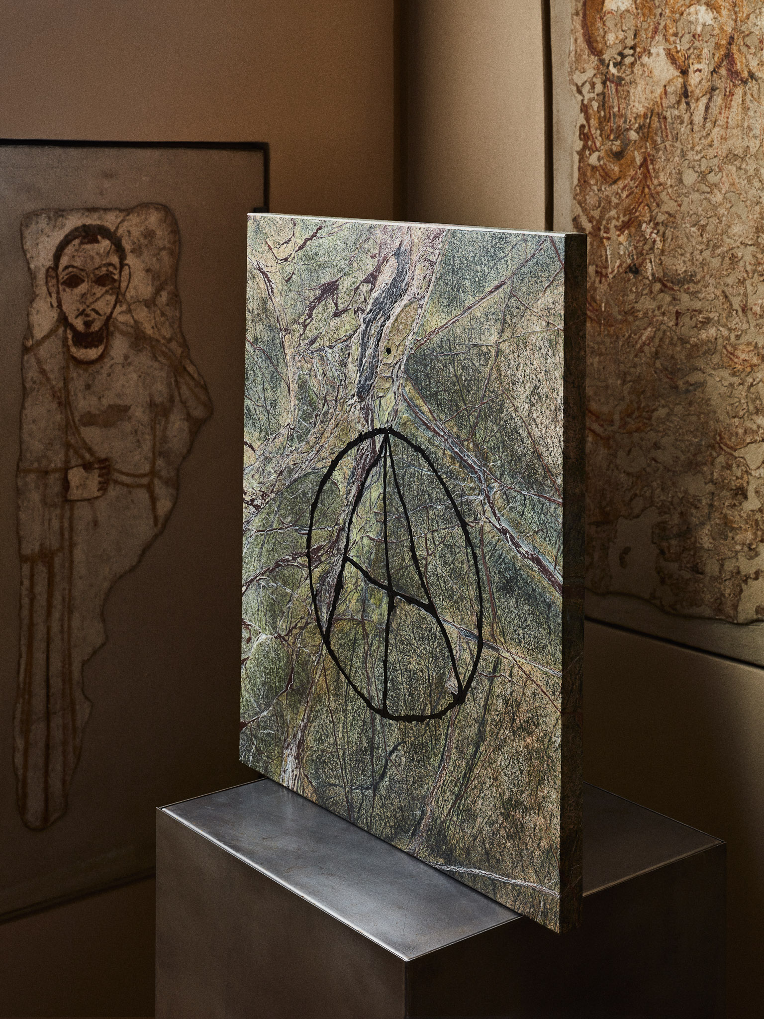 Zrobiłam marmurowy „Sigil”, czyli magiczny znak, kryjący w sobie zaklęcie dotyczące naszej relacji z naturą. Ten kamień był tak piękny sam w sobie, że postanowiłam moją ingerencję w niego ograniczyć do minimum, do powierzchownych zabiegów. Wypiaskowałam go, żeby podkreślić piękne, naturalne żyłkowanie i podążałam za tym wzorem.