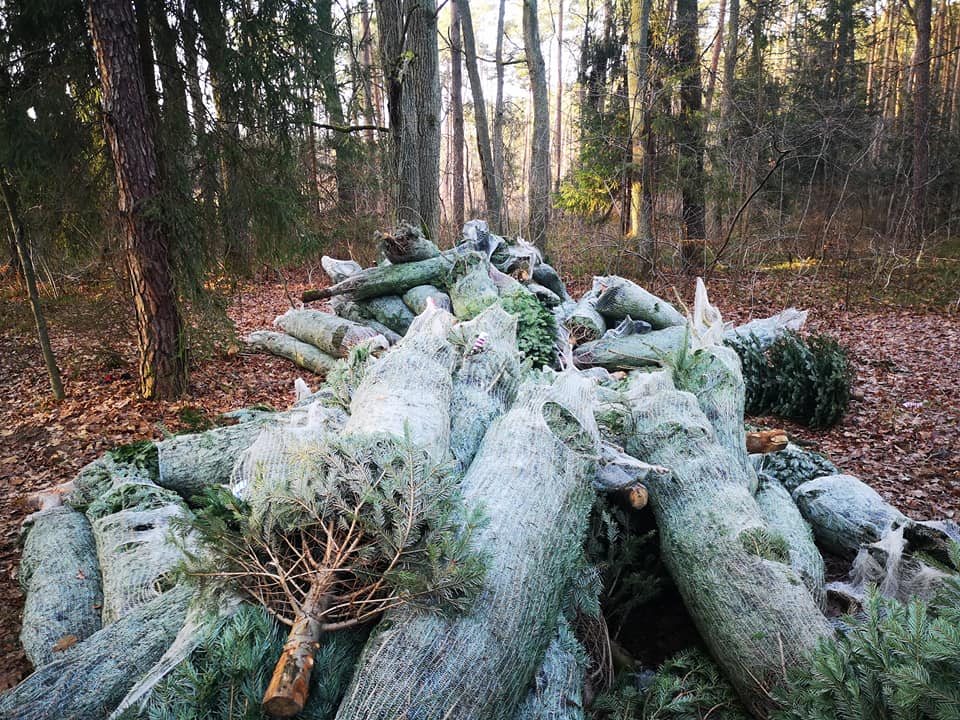 Co dzieje się z choinkami po świętach? W lesie znaleziono stos drzewek owiniętych w plastik