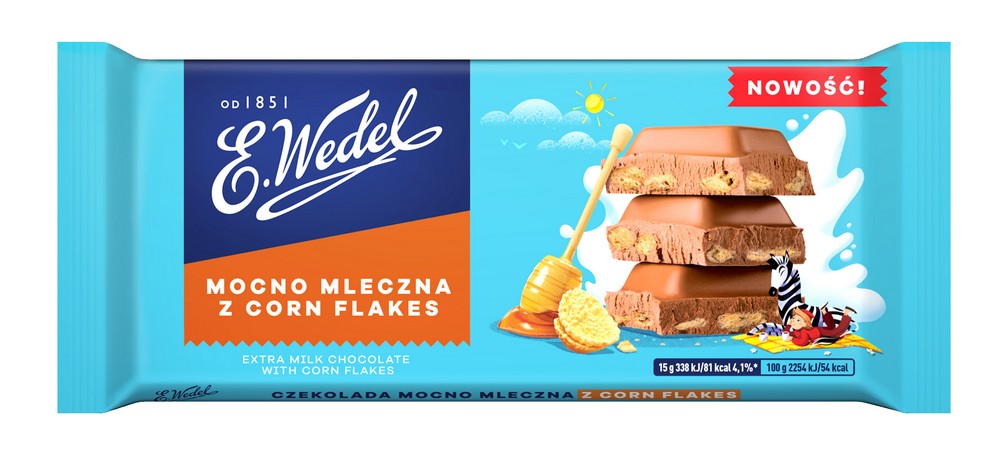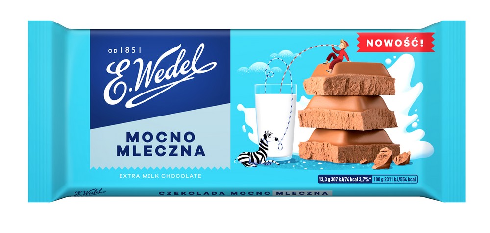 Kontynuując wedlowską tradycję czekoladnictwa, E.Wedel wypuszcza na rynek nową linię rozpływających się w ustach czekolad Mocno Mlecznych, które od początku sierpnia pojawiają się na półkach. Oprócz nowego produktu marka zaskakuje kolejną zmianą – odświeżeniem szaty graficznej opakowań, co stanowi ukłon w stronę historii E.Wedel oraz jej kultowego symbolu. Nowe opakowania to storytelling w najlepszym wydaniu! Scenki z bohaterami, chłopcem i zebrą, nawiązują do codziennych przyjemności i nadają opakowaniom E.Wedel zupełnie nowy, dynamiczny charakter.