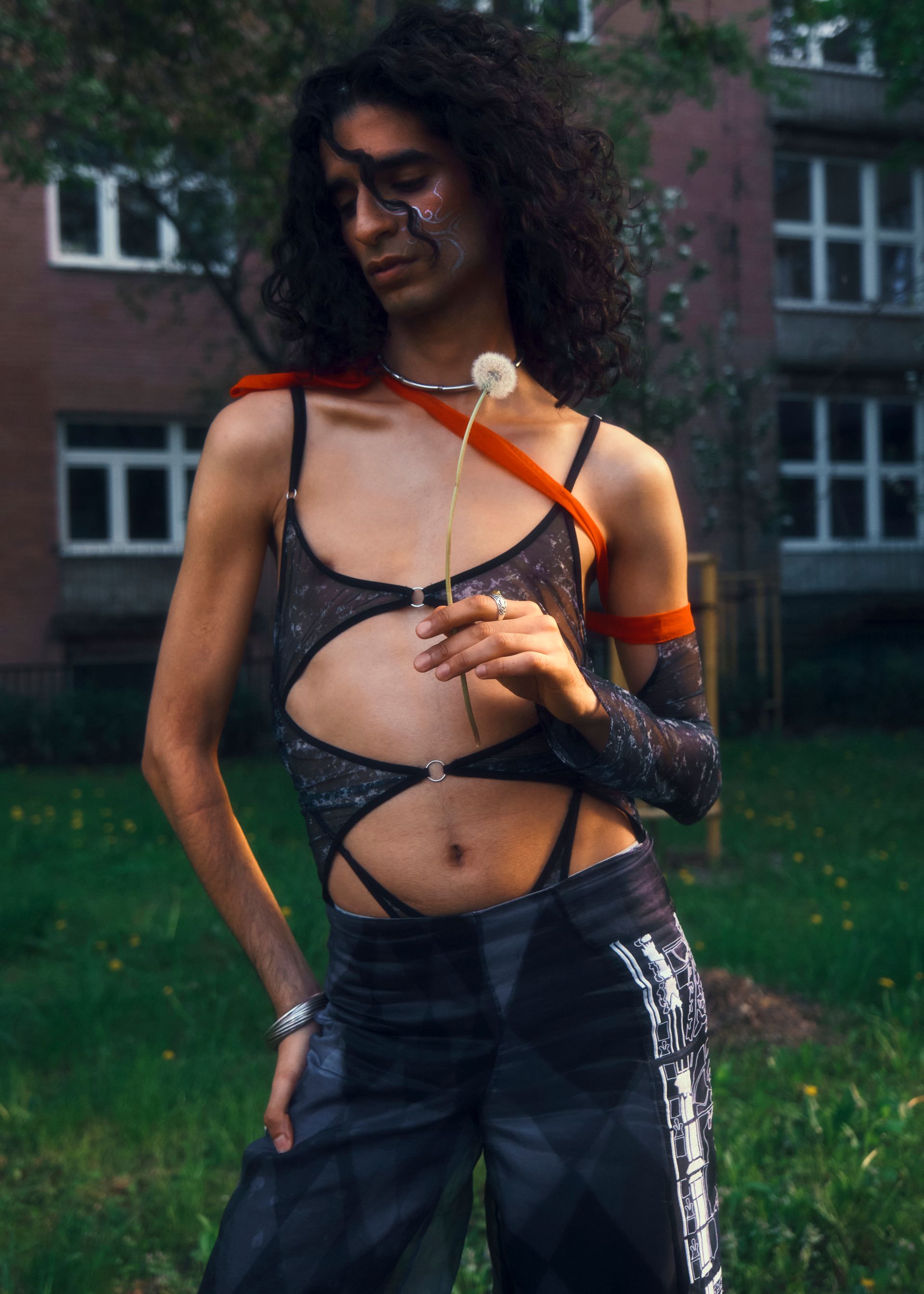 Zaczęło się od studiów oraz Kachy z Kiki House of Femina. Studiowaliśmy na tym samym kierunku na Uniwersytecie Warszawskim i pewnego razu wpadliśmy na siebie na afterze po Paradzie w Luna Parku w 2022 roku. Zaczęliśmy rozmawiać, ona zaoferowała: „Jak będzie jakiś event, dam ci znać. Pójdziesz, jak będziesz chciał”. Faktycznie podesłała mi zaproszenie na bal Dany – The Cybercunt na Jasnej 1; pamiętam ten postapo vibe. W sumie od tego się zaczęło.