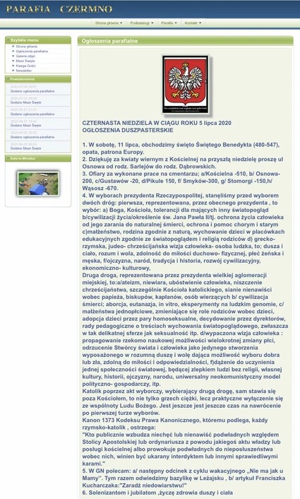 Przed drugą turą wyborów arcybiskup Marek Jędraszewski zaapelował na stronie archidiecezji krakowskiej, aby "zagłosować na kandydata, którego polityczny program jest bliski nauce społecznej Kościoła ze względu na obronę fundamentalnej wartości życia oraz tradycyjnie pojmowaną instytucję małżeństwa i rodziny, a także troskę o zagwarantowanie rodzicom prawa do wychowywanie ich dzieci". Przekaz jest zatem dość jasny. W kazaniu wygłoszonym 1 sierpnia 2019 roku w bazylice Mariackiej arcybiskup Jędraszewski nazwał osoby LGBT "tęczową zarazą". Na stronie Parafii Nawiedzenia Najświętszej Maryi Panny i św. Mikołaja w Czermnie w dziale ogłoszeń pojawił się obszerny wpis dotyczący wyborów. Głosowanie w wyborach przedstawiono jako wybór jednej z dróg. Prezydent Andrzej Duda reprezentuje "Boga i Kościół", a Rafał Trzaskowski "ateizm, niewiarę, niszczenie chrześcijaństwa". Jakby tego było mało 5 lipca ksiądz Jerzy Rozmysłowski otwarcie zachęcał podczas mszy do głosowania na prezydenta Dudę. - Katolik poprzez akt wyborczy, wybierając drugą drogę, sam stawia się po za Kościołem, to nie tylko grzech ciężki, lecz praktycznie wyłączenie się ze wspólnoty Ludu Bożego - brzmiał fragment ogłoszenia, które zniknęło po tym, jak sprawą zainteresowały się media.