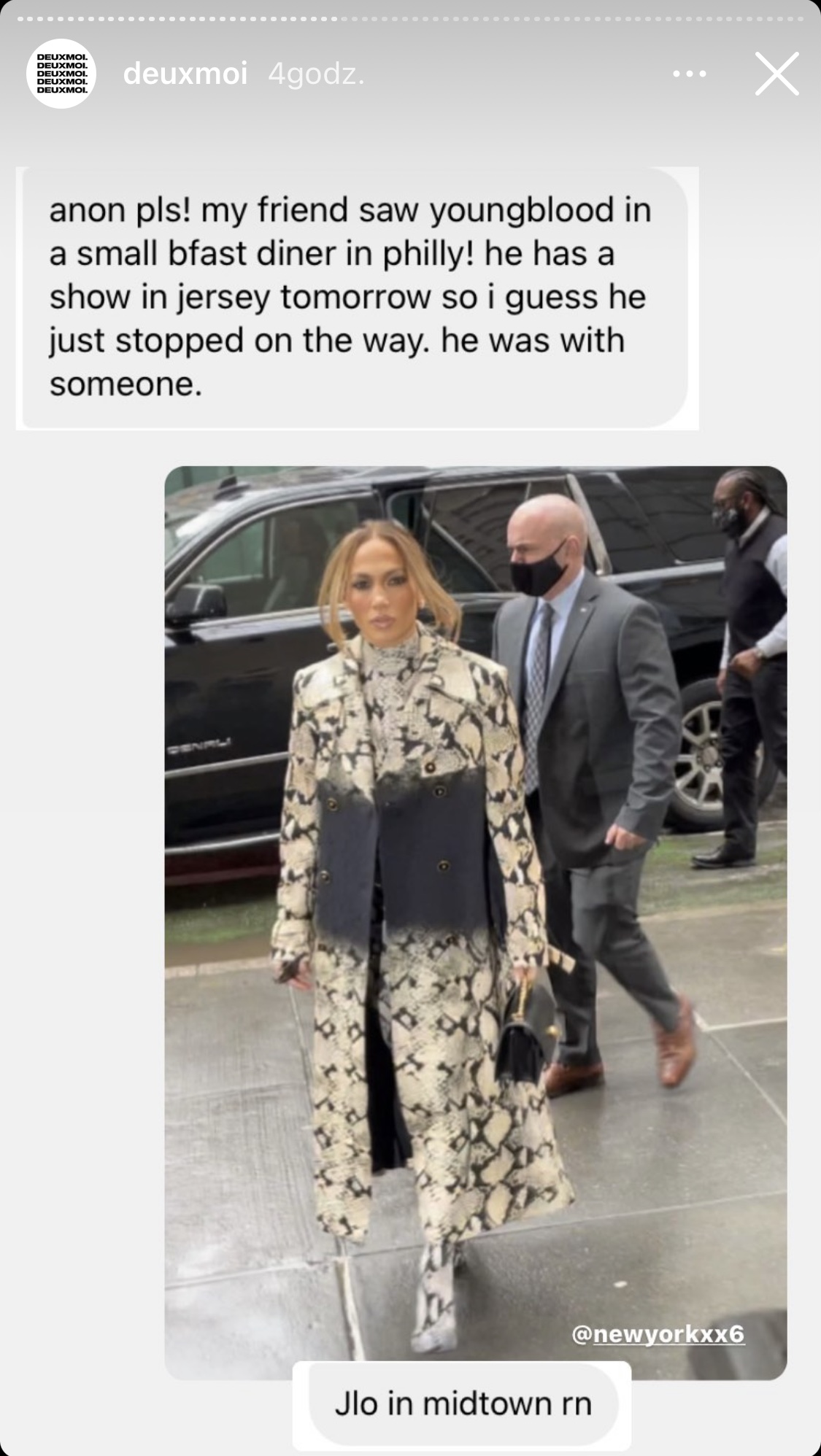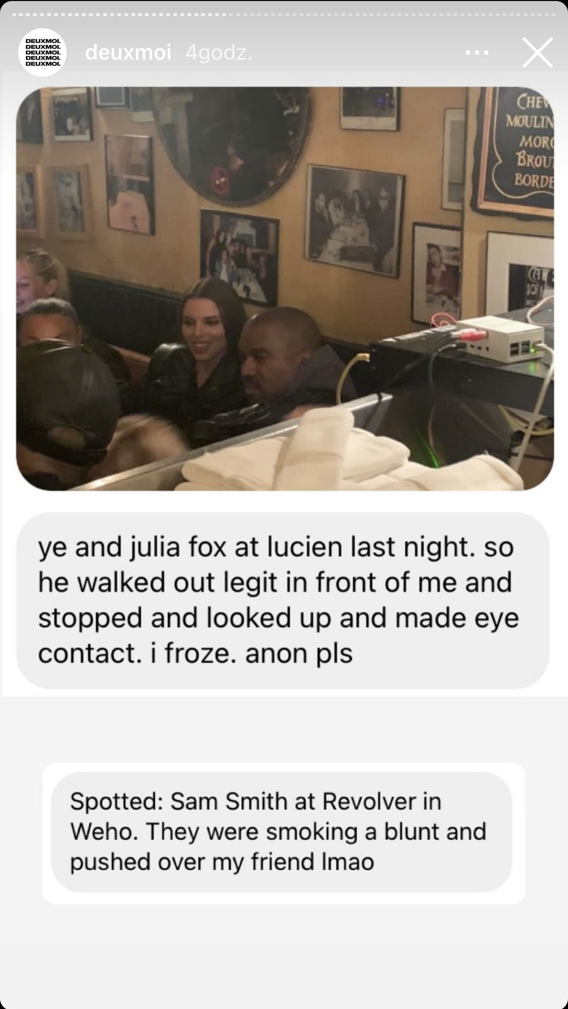 Z InstaStories Deuxmoi dowiemy się zatem np., że Leonardo DiCapiro był ostatnio na meczu, Kim Kardashian robiła zakupy w centrum handlowym, Jennifer Lopez była widziana na śródmieściu, natomiast Kanye West i Julia Fox wybrali się do modnej restauracji. Choć dla bezpieczeństwa gwiazd informacje publikowane są z pewnym opóźnieniem, a wszystkie informacje są niepotwierdzone, kontent Deuxmoi cieszy się ogromnym zainteresowaniem. Być może dlatego, że wielu informatorów Deuxmoi to asystenci, menadżerowie, producenci oraz pracownicy popularnych magazynów, marek i stacji. Świetnym przykładem jest news o okładce brytyjskiego Vogu'e z Beyoncé – Deuxmoi opublikowało informację aż dwa tygodnie wcześniej! Zdarza się jednak, że plotka pozostaje tylko plotką, jak zdarzyło się w przypadku domniemanej ciąży Hailey Bieber.
