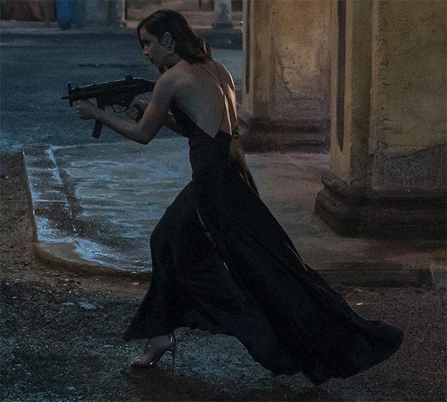 Ana de Armas jako Paloma w modelu Aquazzura Linda 105 Silver w filmie „James Bond. No Time To Die”