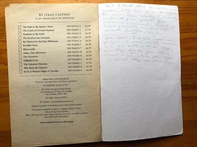„Dedykacja książkowa w formie korespondencji epistolarnej. Z powodu wyblakłego pisma ręcznego (ołówkiem!), całe wieki zajęło mi jej odcyfrowanie. Ale efekt był wart wysiłku. Cokolwiek miałoby to oznaczać.”