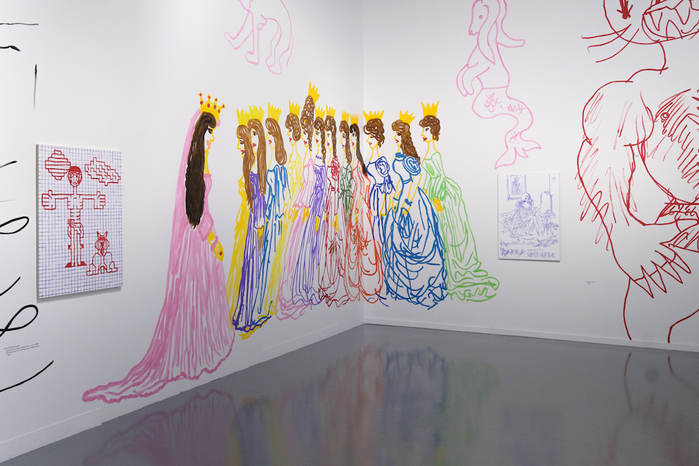 Albo mój ulubiony zarzut, że na wystawie nie ma kobiet. Wchodzisz do pierwszej sali, tam są wszystkie moje rysunki z dzieciństwa, wszędzie są dziewczyny, królewny, moje lalki Barbie, nawet kobieta-Zorro. Jest wywiad z Laerte. W następnej sali wisi wielki portret Ewy Hołuszko i wywiad z nią o jej historii „Solidarności”, są aktywistki na zdjęciach Tillmansa. Dalej jest poczet – Żmichowska, Konopnicka, Dulębianka, Komornicka, Rodziewiczówna, Sadowska, Dąbrowska, Janion, wszystkie magazyny lesbijskie, jakie udało się zgromadzić, prace Libuše Jarcovjákovej, wywiad z Romaną Bantić. Wchodzisz do czerwonej sali, w której są prace Ewy Kuryluk, Natalii LL. A na koniec masz osobną salę z instalacją, właśnie Natalii LL. No ale… „nie ma kobiet na wystawie”.