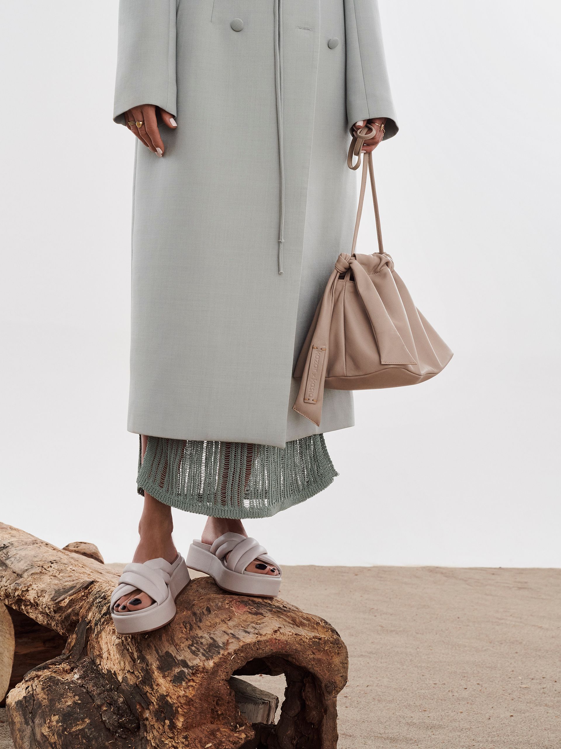 W kolekcji nie mogło zabraknąć białych, funkcjonalnych sneakersów. To kultowe, miejskie buty będące najlepszym dopełnieniem każdej wiosenno-letniej stylizacji. Niewątpliwym hitem tego sezonu będą trzewiki z wysoką cholewką, na mocnej podeszwie z traperem, inspirowane kaloszami. Na ciepłe dni kazar x kasia proponuje wygodne klapki – idealne na co dzień, typu flatform oraz delikatne, kobiece mule na niskim obcasie, których wyściółkę zdobi motyw graficzny pudelka – ukochanego pupila Kasi Sokołowskiej. Wielozadaniowe torby możemy nosić osobno lub dowolnie łączyć ze sobą. W kolekcji znajdziemy małe torebki typu worek, w poręcznych rozmiarach, wiązane na ramieniu torby crossbody na szerokich paskach, a także przydatne akcesoria na telefon i słuchawki. W najnowszej kapsule pojawiają się zupełnie nowe kategorie produktów – peleryny przeciwdeszczowe, skórzane opaski do włosów typu puffy, kuferki na kosmetyki oraz torby podróżne idealne na weekendowe wyjazdy.