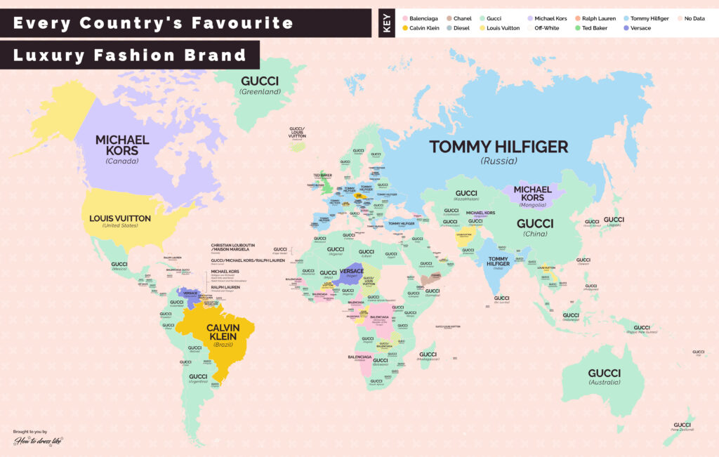 W przypadku marek premium liderem jest dom mody Gucci, który zajmuje pierwsze miejsce w 110 krajach. Pozostałymi top markami są: Tommy Hilfiger (25), Louis Vuitton (15) oraz Balenciaga (14). W Polsce, Niemczech oraz Rosji ulubionym sklepem z modą luksusową jest Tommy Hilfiger.