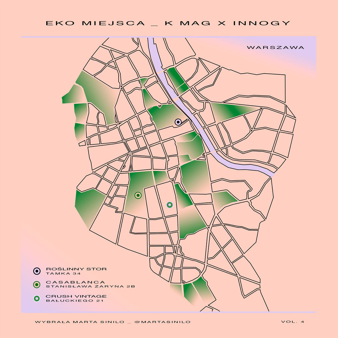 W każde z miejsc wytypowanych przez Martę można dojechać elektrycznym BMW i3 od innogy. Firma wprowadziła właśnie największy elektryczny car sharing w Polsce (i jeden z największych w Europie) innogy go!, który pozwala jeździć ekologicznie. Sam samochód nadaje się do recyklingu w 95%, a w stacjach innogy jest ładowany energią pochodzącą ze źródeł odnawialnych (konkretnie wiatru). Samochody od innogy go! mogą jeździć bus pasami, nie obejmuje ich opłata za miejski parking i w dodatku są przestronne - będziecie zdziwieni, widząc, ile może się zmieścić w czteroosobowym aucie. Co więcej, można je wynająć za pomocą aplikacji, a jedno ładowanie wystarcza na przejechanie 180 kilometrów. Dla tych, którzy zdecydują się na krótki wyjazd za miasto, innogy przygotowało pakiety dobowe (239 zł za 24 godziny wypożyczenia, płatne po zakończonym najmie) i możliwość wypożyczenia kabla do samodzielnego ładowania, który wystarczy podłączyć do zwykłego gniazdka, a by go otrzymać, trzeba jedynie skontaktować się z infolinią i umówić na odbiór kabla. Z innogy go! spokojnie możemy jechać w każdą głuszę - auto jest wyjątkowe ciche. Póki co samochody od innogy dostępne są tylko w Warszawie, ale mamy przeczucie, że to tylko kwestia czasu, aż pojawią się również w innych miastach.