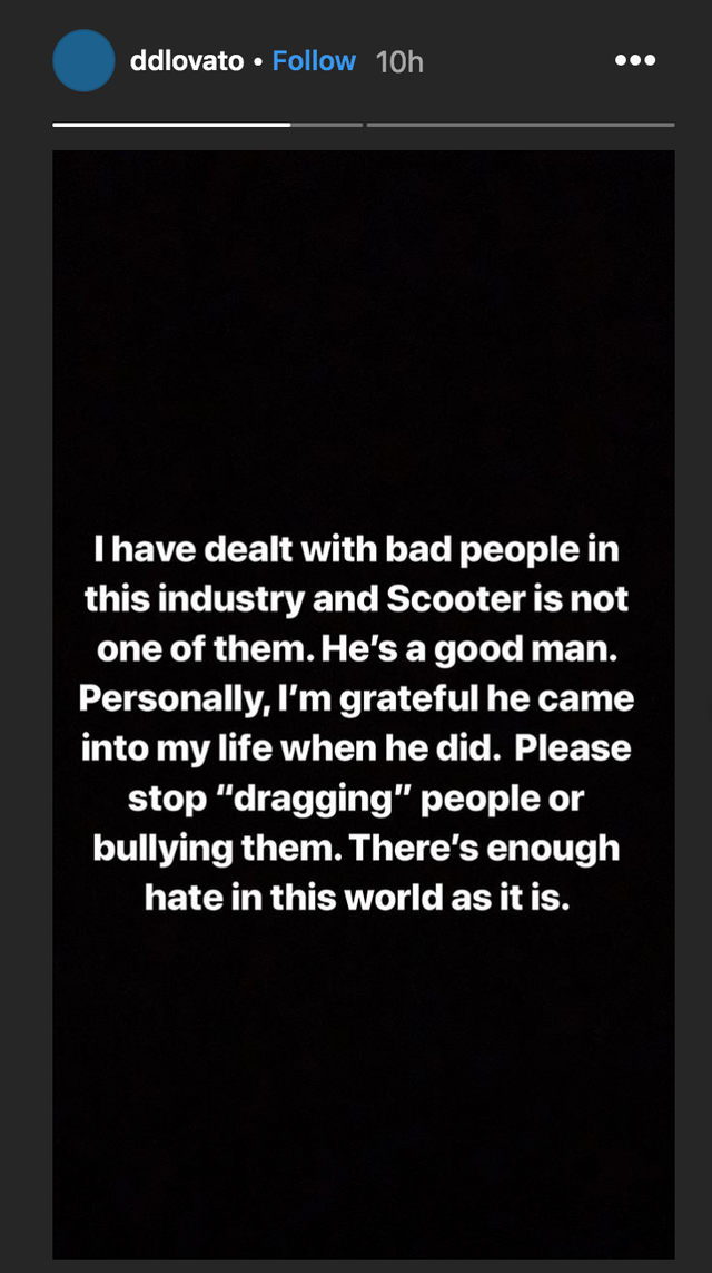 Po stronie Scootera Brauna opowiedzieli się natomiast Justin Bieber, Demi Lovato, Ty Dolla $ign czy Hailer Bieber. Chociaż sam Brown nadal milczy, zarzuty Taylor odparła jego żona, Yael. Post Yael polubiła m.in. Kendall Jenner, Jenna Dewan, Demi Lovato czy Kacey Musgraves.