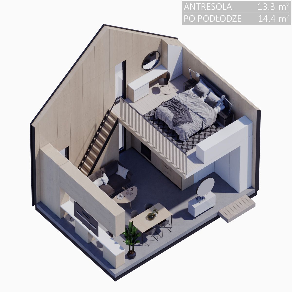 Niewielka przestrzeń wymaga pewnych kompromisów, ale zarazem daje też dużo możliwości. Modulo House można z łatwością rozbudować o kolejny moduł – w zależności od potrzeb domowników. Jest idealnym rozwiązaniem nie tylko dla minimalistów, ale także dla tych, którzy nie chcą już czekać ze znalezieniem swojego miejsca na Ziemi. W końcu Modulo House można postawić w 3 miesiące.