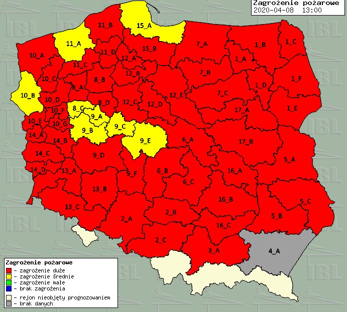 Codziennie Lasy Państwowe opracowują mapę zagrożenia pożarowego i na dzień dzisiejszy sytuacja wygląda następująco: