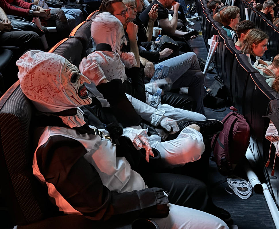 We wszystkich trzech częściach w rolę Klauna Arta wciela się w David Howard Thornton, który był gościem honorowym polskiej premiery „Terrifier 3”. Wydarzenie odbyło się w ramach BIFOR Splat!FilmFest, czyli rozgrzewki przed festiwalem Splat!FilmFest – jedynym w Polsce festiwalu nowego kina grozy, fantastyki, kina gatunkowego i bezkompromisowego kina arthousowego, który odbywa się w dniach 24-31.10 w Warszawie i Wrocławiu.Cały program znajdziecie TUTAJ.My również byliśmy na premierze (tym razem nikt nie zemdlał) i nawet zadaliśmy ku kilka pytań. „Zawsze chciałem zagrać niemą, tajemniczą postać”