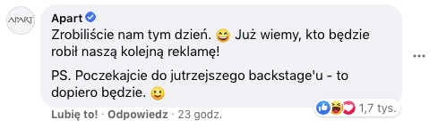 W listopadzie w sklepach rozpoczął się sezon świąteczny, a marki i firmy skupiły się na promowaniu swoich sezonowych produktów i kolekcji. W zeszłym tygodniu w sieci ukazała się niemal czterominutowa reklama świąteczna Apartu z Julią Wieniawą, Małgorzatą Sochą oraz Anną Lewandowską, która prawdopodobnie przeszłaby bez większego echa, gdyby nie parodia warszawskiego Klubu Komediowego. Chociaż w wersji Klubu Komediowego zmieniła się tylko oprawa muzyczna, ich autorski tekst sprawia, że naprawdę trudno powstrzymać się od śmiechu. Jak można sie domyślić, parodia przypadła do gustu internautom i szybko stała się hitem internetu.
