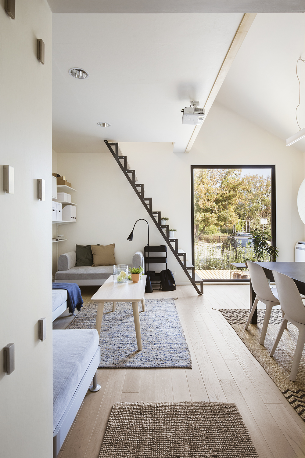 Mikrodom Solace House składa się też z powtarzalnych elementów, dzięki czemu można tworzyć warianty bliźniacze (dwa lub cztery razy 45 metrów kwadratowych w formie lustrzanych odbić - podstawy i antresoli). W sumie projektanci przewidzieli możliwość stworzenia wewnątrz kilku mieszkań, co okaże się przydatne dla osób, które być może kiedyś będą chciały powiększyć rodzinę czy po prostu zamieszkać w małej komunie. Wystarczy tylko dodać łącznik i kolejną bryłę podstawową mieszkania. Do każdego mikrodomu można też dostawić wiatę, w której zrobimy własny naziemny taras.