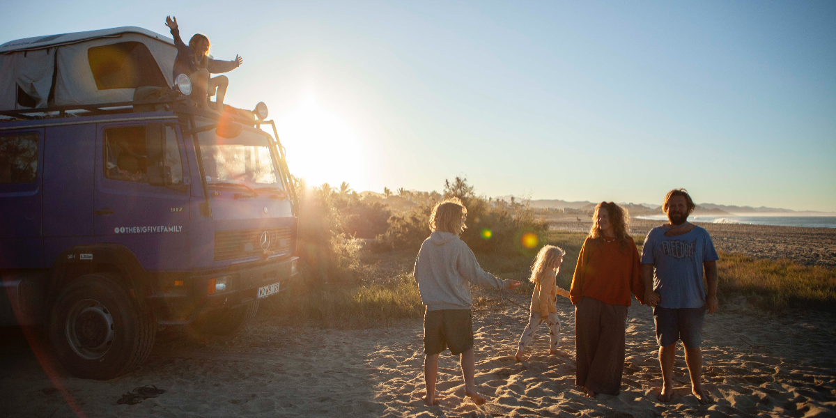 Agnieszka Kokowska: Poznaliśmy się dosyć spontanicznie. Byłam na planie filmowym tuż po pierwszym lockdownie, który odbywał się w ich domu w Radości. Zaczepiłam Kasię, bo poczułam od nich swobodną energię. Zazwyczaj właściciele domów, które są używane jako lokacje filmowe, nie są obecni na planie, a tutaj byli, ich dzieci biegały wokół. Było to wyjątkowe, emanowała od nich duża swoboda. Podczas przerwy obiadowej zaczęłam rozmawiać z Kasią, komplementując ich dom. Kasia od razu mnie skontrowała, mówiąc, że właśnie go sprzedali. Opowiedziała, że wyruszają kamperem w podróż dookoła świata, w pogoni za słońcem. Wtedy powstał pomysł na tytuł „W stronę słońca”. Od tego dnia tytuł pozostał niezmieniony. Próbowałam później wymyślić coś innego, ale nic lepszego nie przyszło mi do głowy, więc tak już zostało.