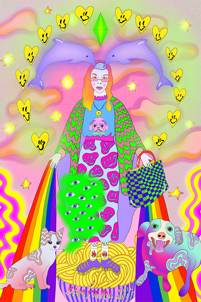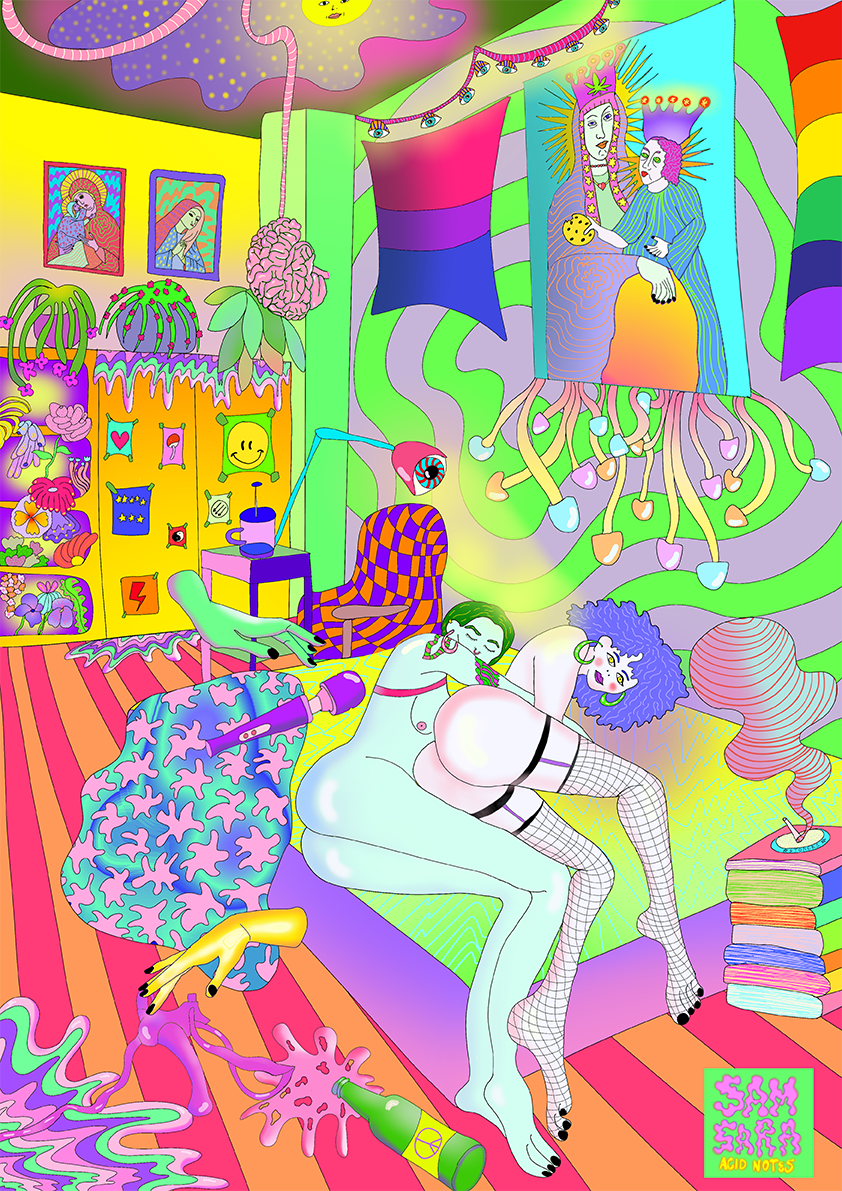 Zakochałam się w mojej dziewczynie, trochę (bardzo) dzięki jej sztuce. Po raz pierwszy zobaczyłam jej prace przez udostępnienia moich znajomych na InstaStories. Na początku, będąc totalnie onieśmielona wyrazistością prac i nią samą, zaczęłam śledzić jej konto z takim: „Hmm, chyba wreszcie wiem, co to oznacza mieć crusha”. Jednego wieczoru, będąc po piwku, trochę przerażona napisałam do niej. Krótko po tym wylądowałyśmy na pięciodniowej randce. I tutaj faktycznie sztuka ma moc zmieniania rzeczywistości, bo nie dość, że żyjemy razem, to czynnie występujemy w swoich projektach i pracach.