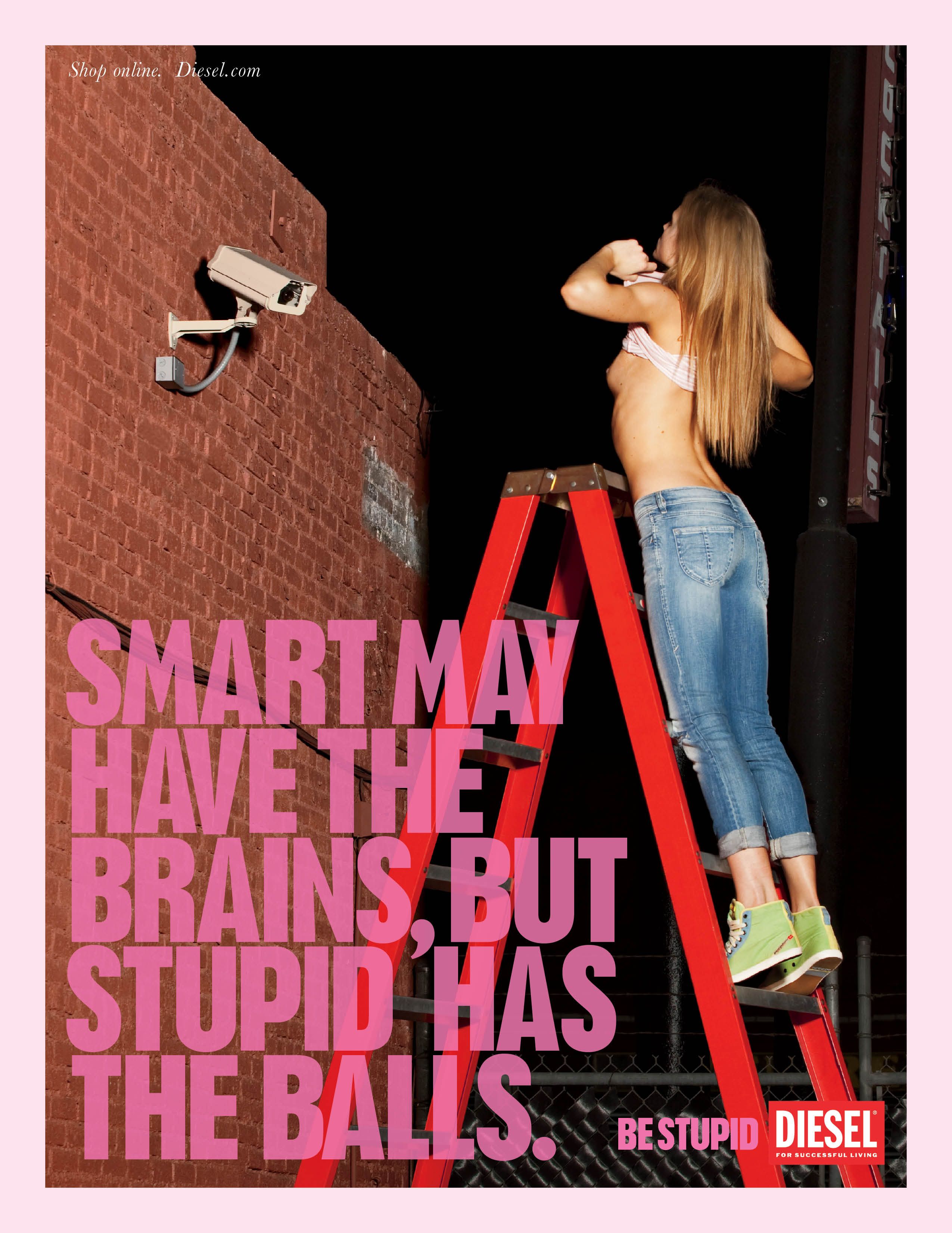 Plakat z kampanii ,,Be Stupid - Diesel" z 2010 roku.