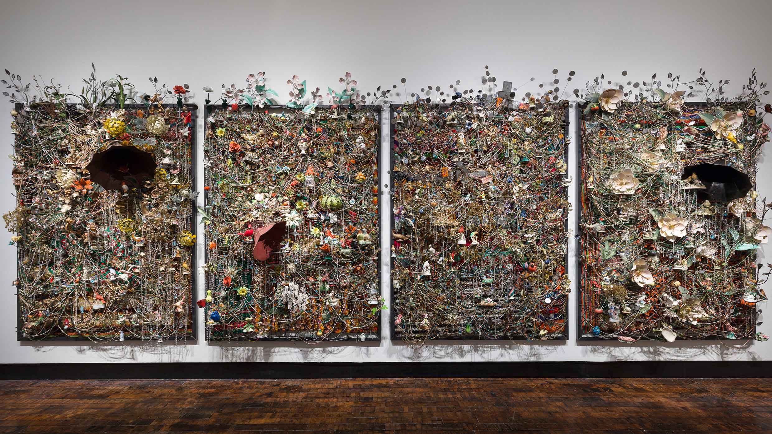 Metal, cekiny, sztuczne kwiaty, globusy, peruki i gałęzie. Wystawa „Forothermore” w Guggenheimie przejmuje kunsztem artysty. Zazwyczaj niewyobrażalnie głośnie i skoczne „Soundsuits”, którym towarzyszy stały stukot i dudnienie, teraz stoją sztywne w Nowym Jorku. Statyczna perspektywa zmienia nieco znaczenie dzieł Nicka Cave’a.