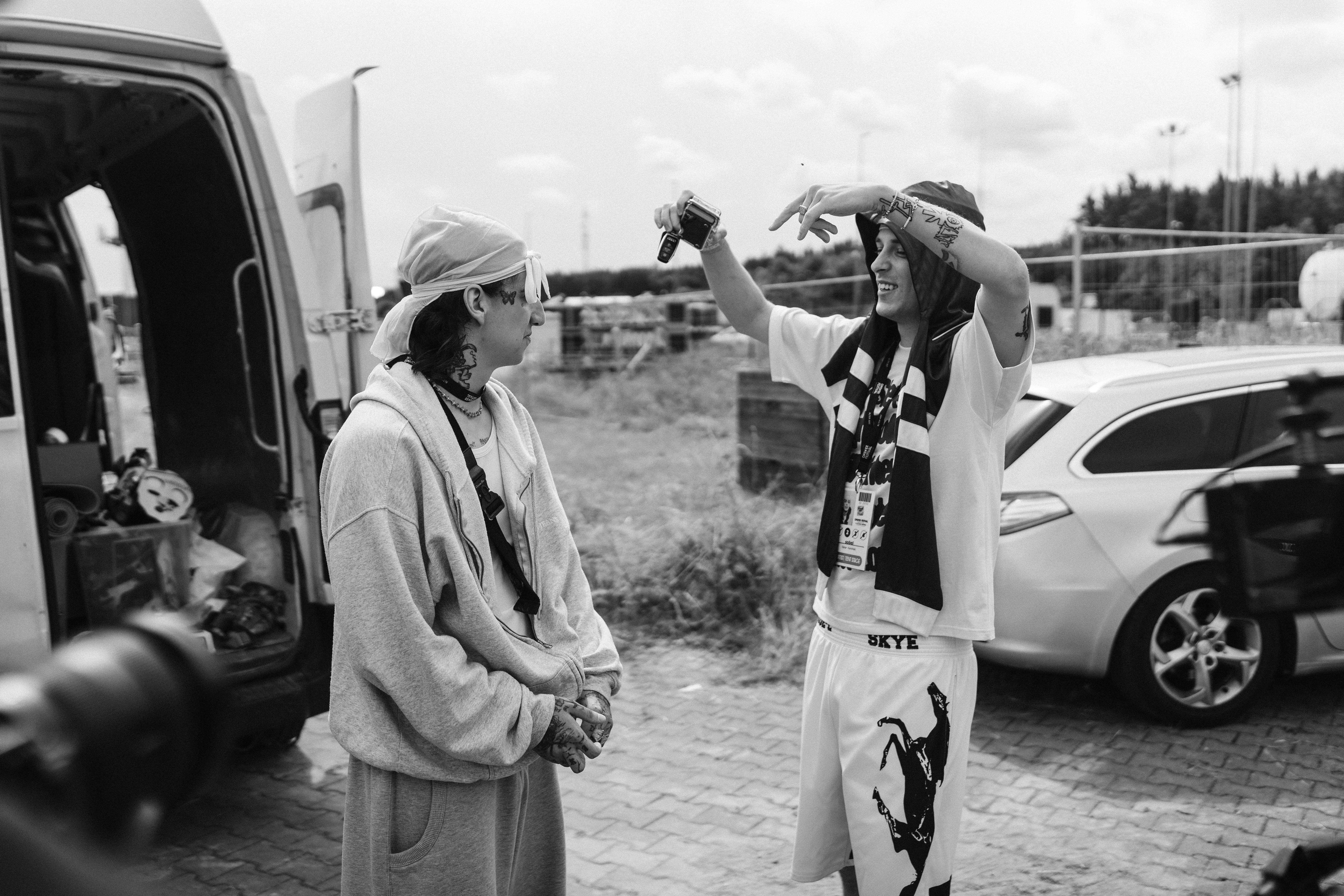 Dla mnie ta przygoda rozpoczęła się drugiego dnia festiwalu o 9 rano na terenie lotniska Gdynia-Kosakowo. Dla Szymona i całej jego ekipy — managementu, wytwórni, agencji bookingowej i najbliższych przyjaciół oraz rodziny trwała już od długich miesięcy. Spotkaliśmy się przy punkcie akredytacyjnym. Przyjechał ze swoim wieloletnim DJem i muzycznym towarzyszem, Deemzem. Wciąż przeżywał koncert Travisa Scotta, który oglądał dwa dni wcześniej w Krakowie.