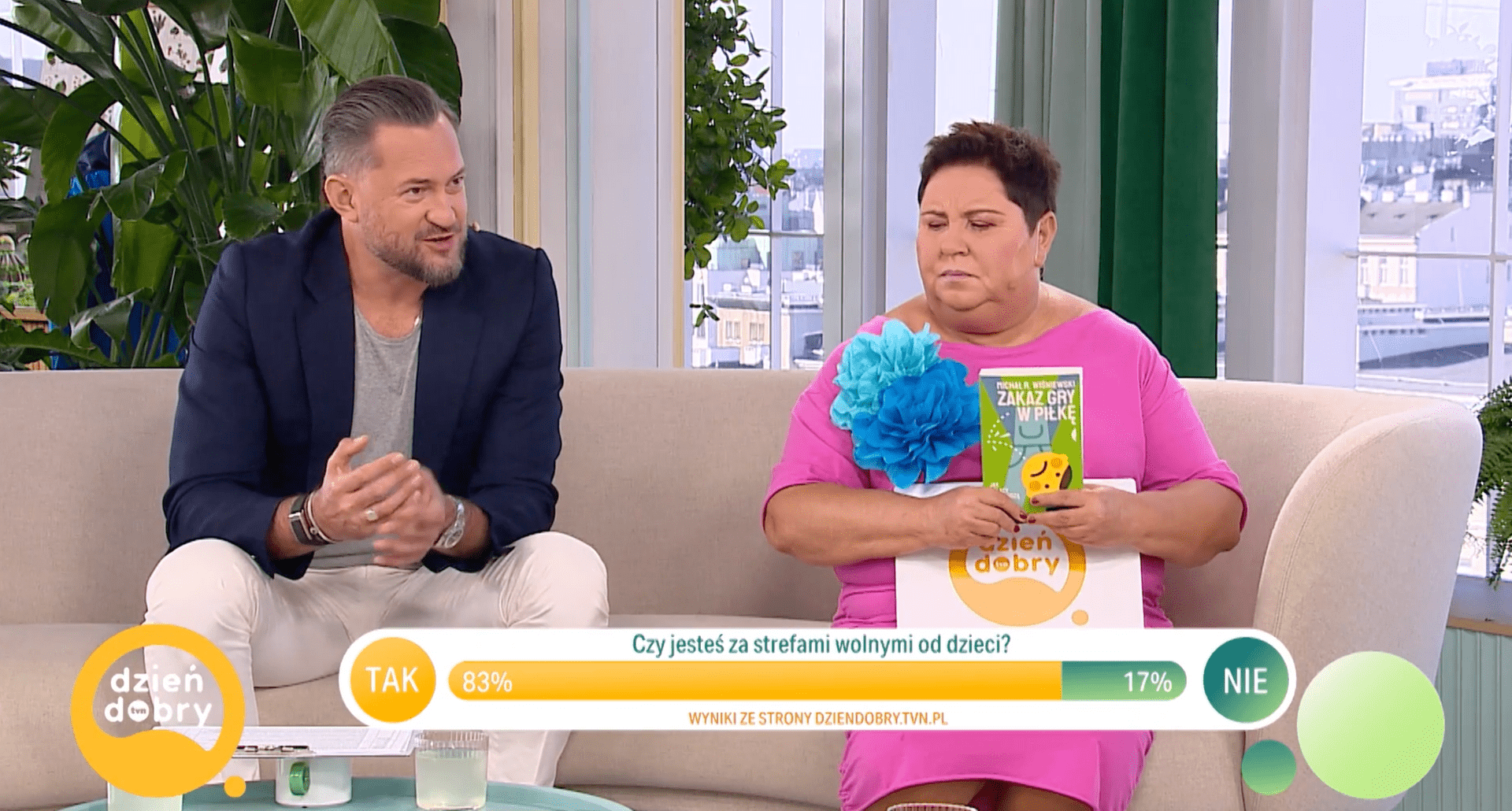 Na kanapie zasiedli: Paulina Socha-Jakubowska, dziennikarka i przeciwniczka miejsc wolnych od dzieci, Agnieszka Grabowska, zwolenniczka miejsc wolnych od dzieci, Andrzej Tarkowski-Kiliszewski, nauczyciel, prawnik i zwolennik miejsc wolnych od dzieci oraz Michał R. Wiśniewski, pisarz i autor książki „Zakaz gry w piłkę. Jak Polacy nienawidzą dzieci”. Razem z prowadzącymi program, Dorotą Wellmann i Marcinem Prokopem, dyskutowali na temat słuszności pozbawienia dzieci wstępu do niektórych miejsc.