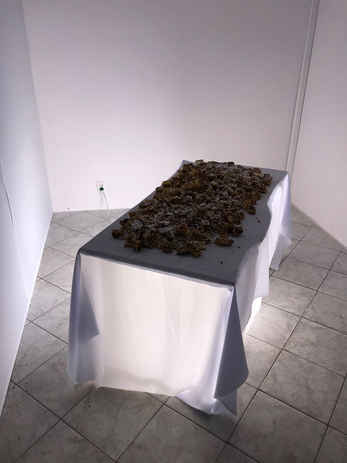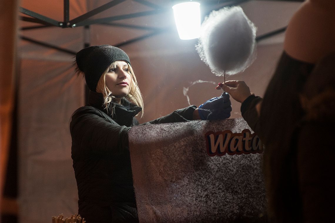 Zjeść można było także inne dzieło sztuki. Diana Rönnberg, artystka wizualna i absolwentka Akademii Sztuk Pięknych w Poznaniu, częstowała zwiedzających watą cukrową o smaku lukrecji. Słodki przysmak to nieodłączny element wakacyjnych zabaw, festynów, kolorowych wesołych miasteczek. Wata Diany Rönnberg była jednak bezlitośnie szara.