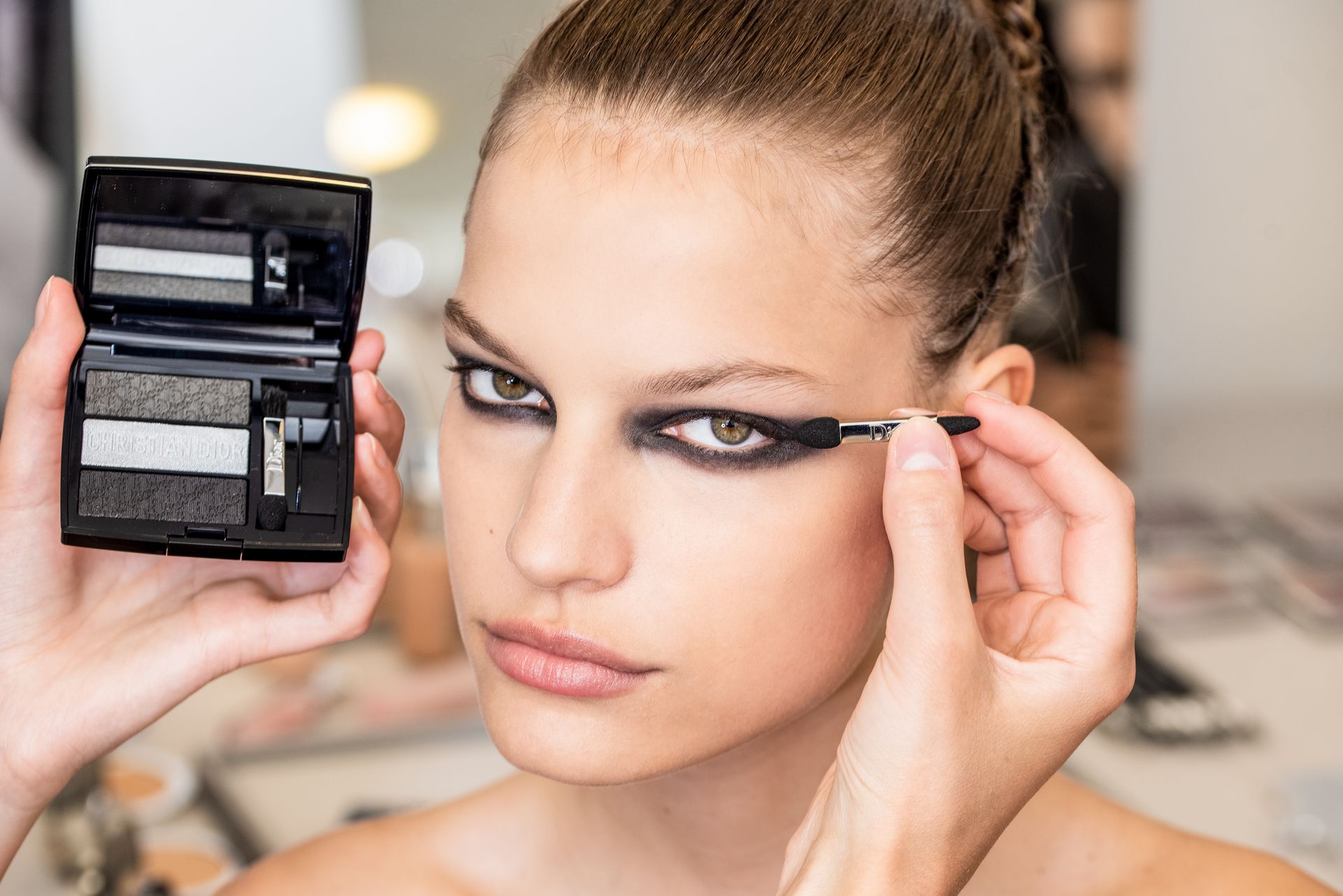 A to duża odpowiedzialność i nic zabawnego. W podniosłej, ceremonialnej wręcz atmosferze modelki przechadzały się po wybiegu w gorsetach i piórach, ich twarze zakryte były woalkami, a suknie z bufkami spływały kaskadą czarnych koronek i drapowań. Makijaż Diora z przydymionym, ciemnym okiem, przeźroczystą cerą i naturalnymi, stonowanymi ustami przywodził na myśl archetyp pięknej, młodej wdowy. Elegancja spotkała się tutaj ze smutnym, tęsknym pięknem, a czarne smoky eyes dodały całości pazura.