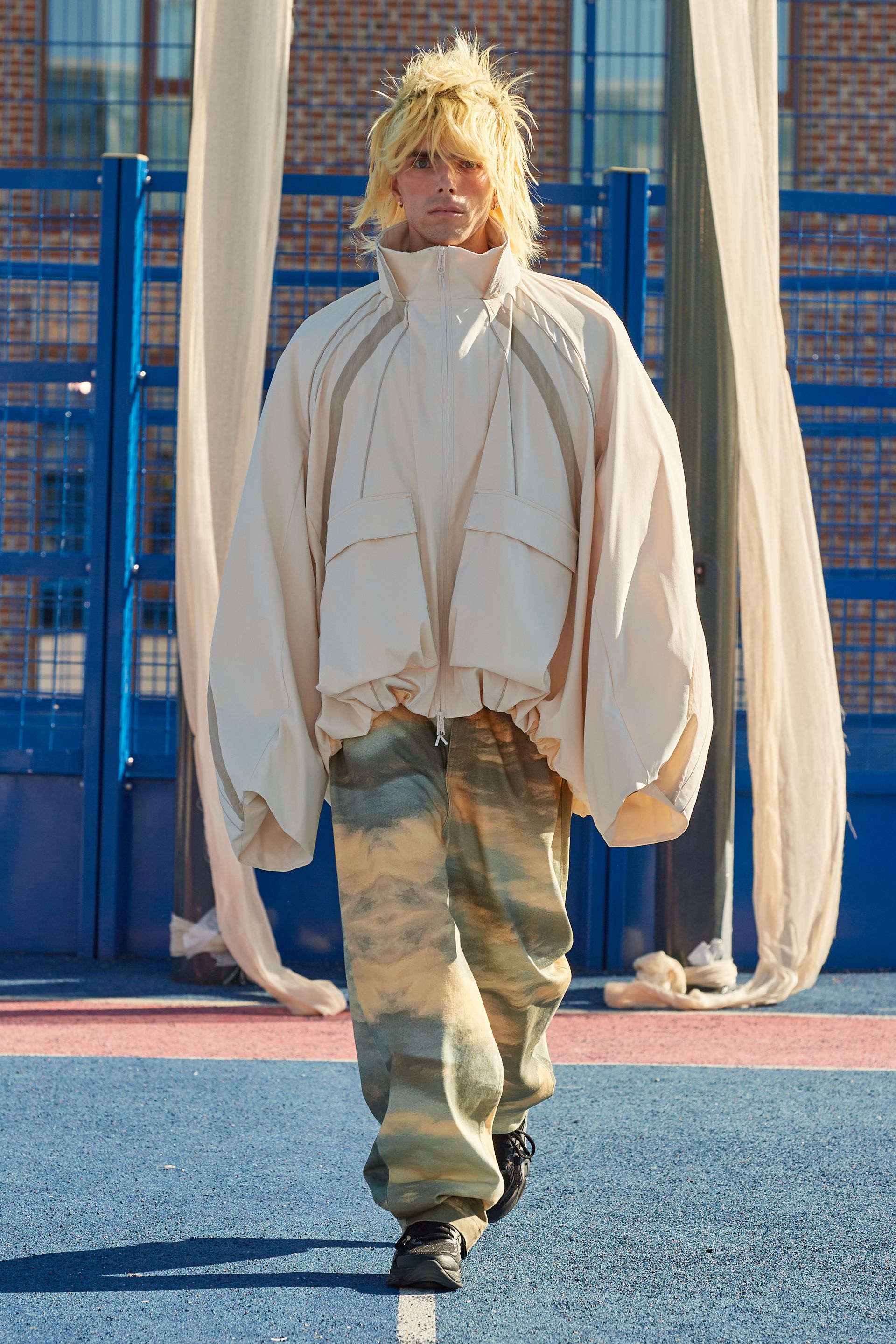 Wiatrówka przyda się bez względu na porę roku. W końcu ta w naszej szerokości geograficznej nie raz płata figle, a eklektyczne looki z pokazów są na to najlepszym przykładem. Miuccię Pradę swobodnie moglibyśmy okrzyknąć najlepszą ambasadorką wiatrówki, choć na sztandary wznosi ją też Simone Rocha czy Ferragamo, przenosząc na sale baletowe. Z ortalionowymi przyzwyczajeniami zrywa też Lovechild – nanosząc na nie rozmyte pastelowe odcienie, adaptuje je do letniego krajobrazu. Tym samym śladem podąża szyjąca z niego ściągaczowe sukienki Opera Sport lub sięgający po spódnice midi Diesel. Leciutka, podszyta wiatrem kurtka to jedynie początek. Ortalion revival is real i jeszcze nie raz nas zaskoczy, wychodząc z ukrycia.