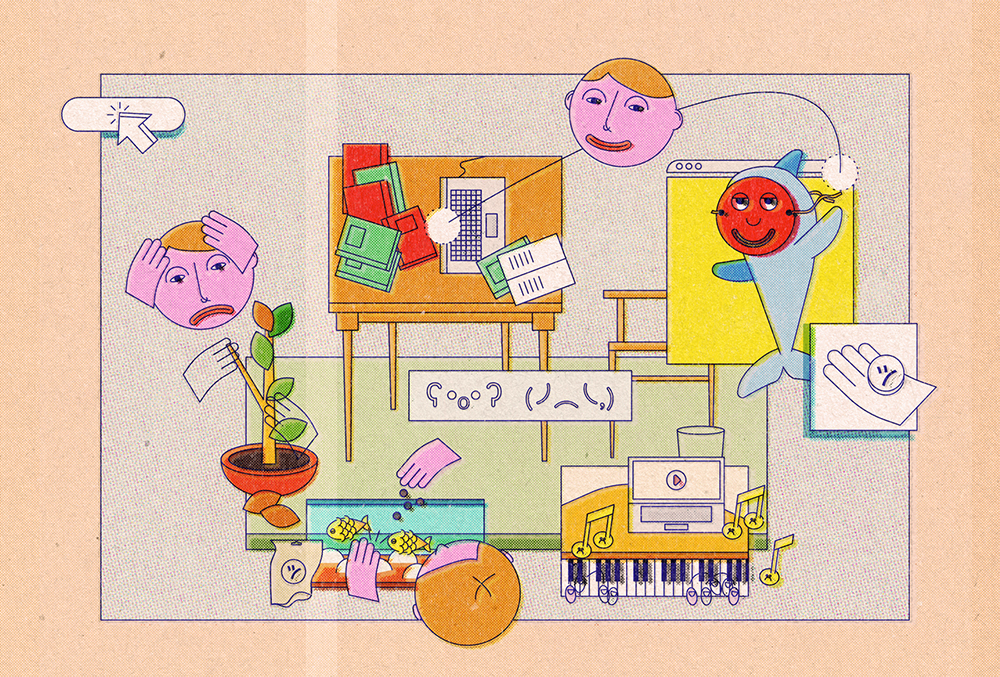 Myślę, że zmieniła moje codzienne życie na lepsze, skupiłem się na rozwijaniu swoich umiejętności. Uczę się teraz After Effectsa, mam więcej czasu na naukę niemieckiego, przesadziłem wszystkie roślinki. Nadrobiłem też dużo rozciągniętych w czasie zaplanowanych rzeczy. W firmie, w której pracowałem, od razu przeliśmy na tryb zdalny, ale nie jest to fajne rozwiązanie. Praca w domu jest męcząca. Idealnym rozwiązaniem jest możliwość wyboru między biurem a pracą zdalną (chociaż zlecenia ilustratorskie zawsze realizowałem w domu i mi to nie przeszkadzało). A w ogóle to chyba podświadomie wyczułem moment, bo tydzień przed lockdownem kupiłem nowe krzesło i monitor!