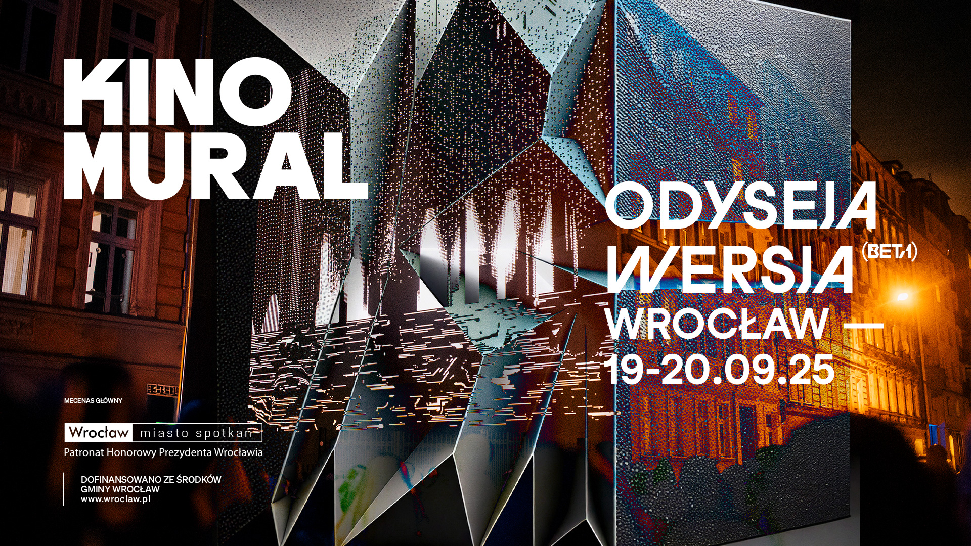 Dwie wrześniowe noce, 90 najlepszych artystów z 20 krajów i ponad 500 projekcji na ścianach budynków kultowego Nadodrza. Skala tego wydarzenia zupełnie zmienia perspektywę miasta. To trzeba przeżyć! Dlaczego? Miasto staje się wielkim ekranem, a kamienice ożywają światłem, ruchem i dźwiękiem. Kinomural daje publiczności niewątpliwie nowe, niepowtarzalne doświadczenie. To wydarzenie, podczas którego nie ma wytyczonej ścieżki oglądania i zwiedzania kolejnych zakamarków artystycznego labiryntu. Widzowie wyruszają w podróż i sami decydują jaki będzie jej kierunek. W programie znalazło się sześć ścian o średniej powierzchni 300 m2 obejmujących aż 4 piętra (wyobraźcie sobie - na takiej powierzchni zmieściłoby się 29 000 smartfonów), a każda z nich to inna opowieść, inny świat i inne emocje. Nad selekcją prac czuwają kuratorzy, dzięki czemu co roku możemy zobaczyć dzieła topowych artystek i artystów sztuki nowych mediów z całego świata: Japonii, Chile, Korei, Włoch, Wielkiej Brytanii, Stanów Zjednoczonych, Szwajcarii, Niemiec oraz Polski. Tematem tegorocznej edycji jest „ODYSEJA: WERSJA BETA”.