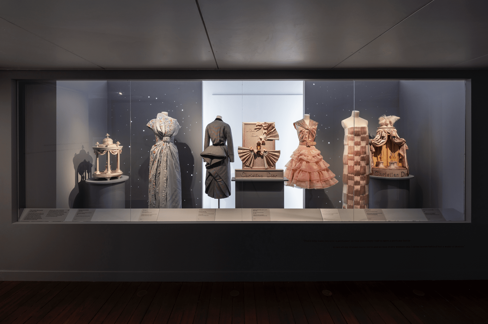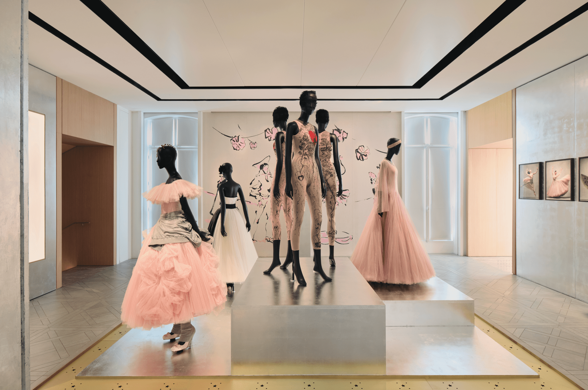 W La Galerie Dior przy rue François-Ier ciało zostaje wyprowadzone na środek sceny. Po raz pierwszy jedna z sal poświęcona została wyłącznie tańcowi – nie jako metaforze, ale jako formie obecności. Christian Dior projektował kostiumy do baletu Treize Danses, ale sam akt projektowania, jego proporcje i konstrukcje, nosiły w sobie choreografię.