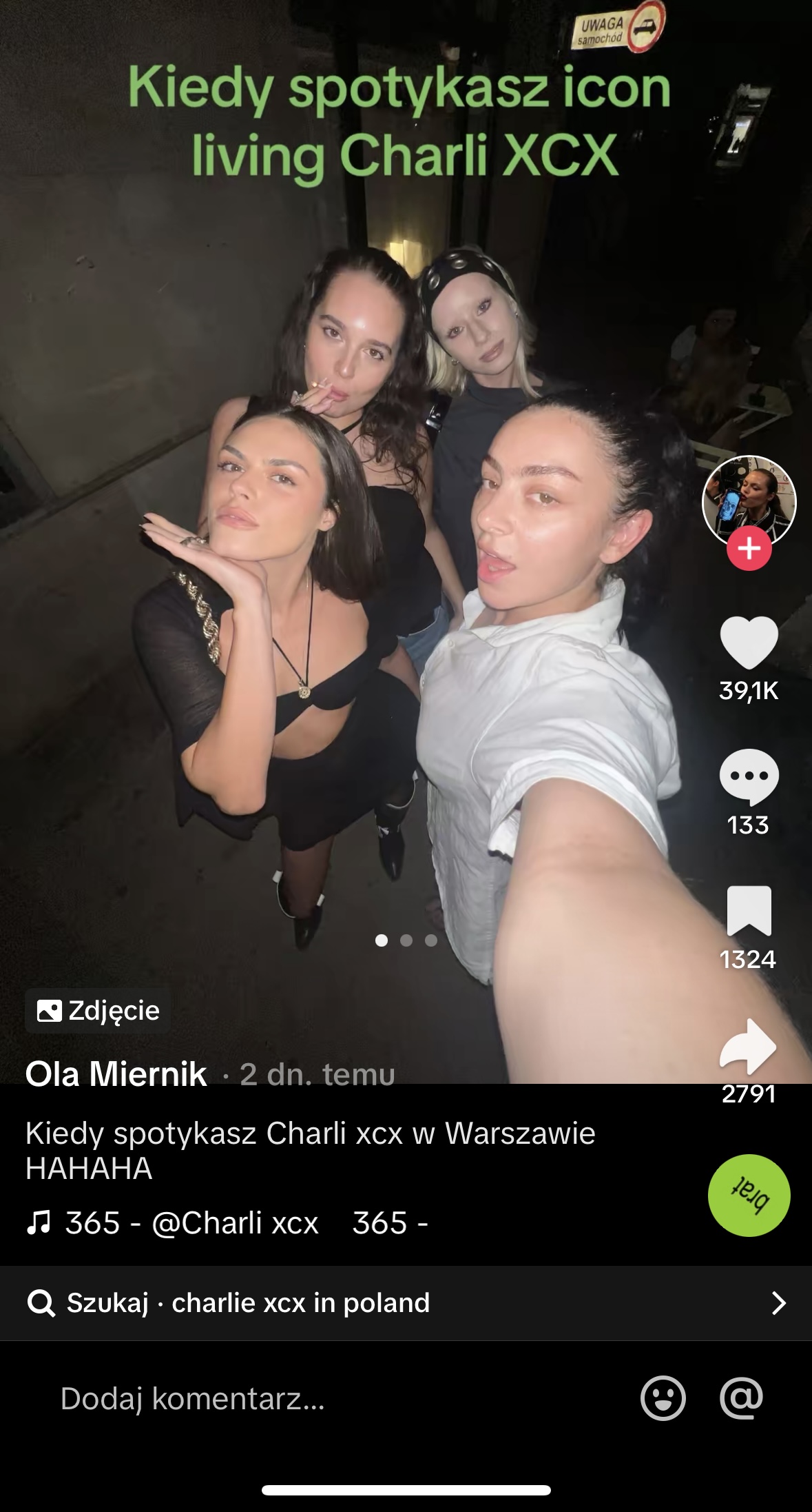 Kilka dni temu Charli XCX pochwaliła się na TikToku, że jest już w Warszawie.