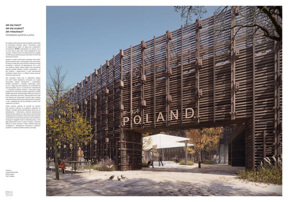 Nie pierwszy raz nawiązanie do atrybutów narodowej tożsamości stanowi kręgosłup konceptu Nizio Design. Twórcy projektu postawili na pawilon w formie ukochanej, nadwiślańskiej wierzby. Elewacja konstrukcji ma „lewitować” nad ziemią, dawać pod zwieszonymi konarami ochronę, zbliżać. To również laboratorium biotechnologii i natury, zaś umieszczony na dachu niedostępny ogród ma podkreślać wagę znikającej z naszej rzeczywistości natury.